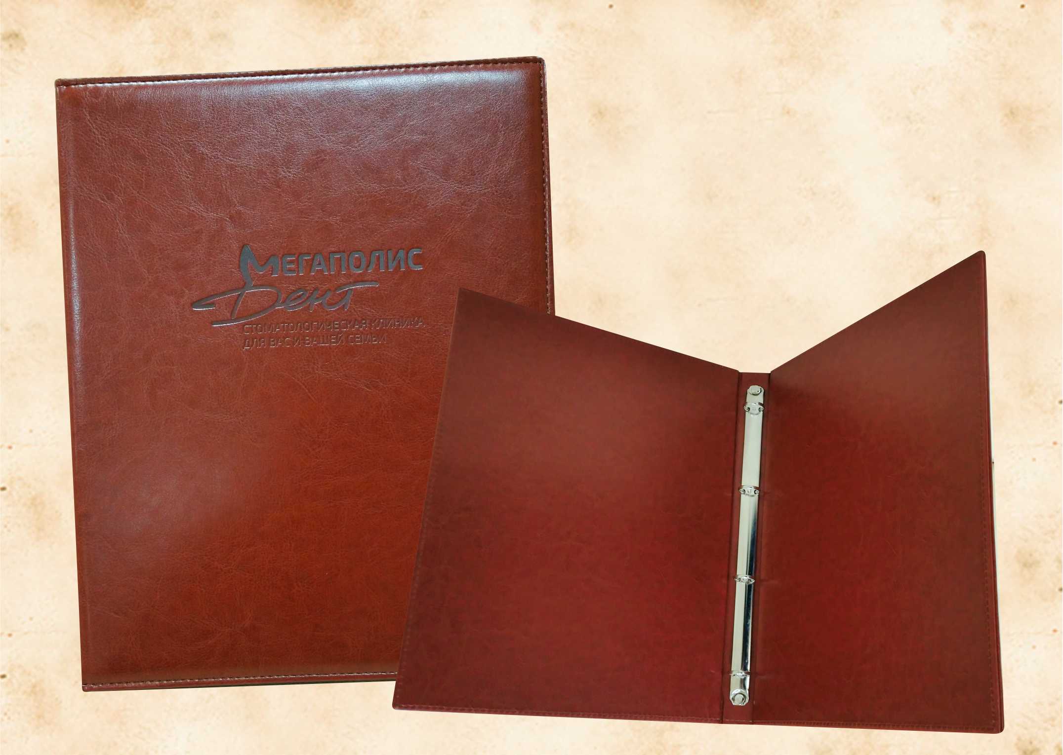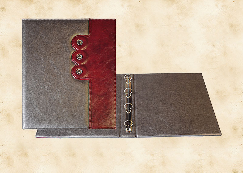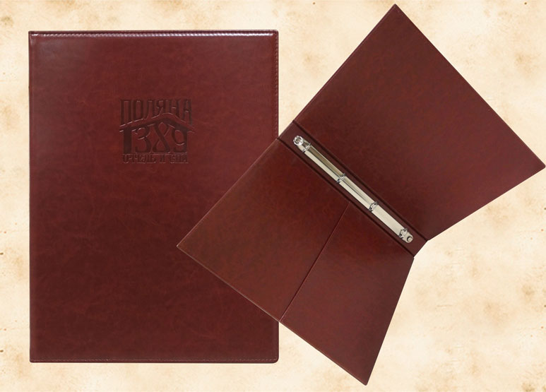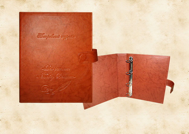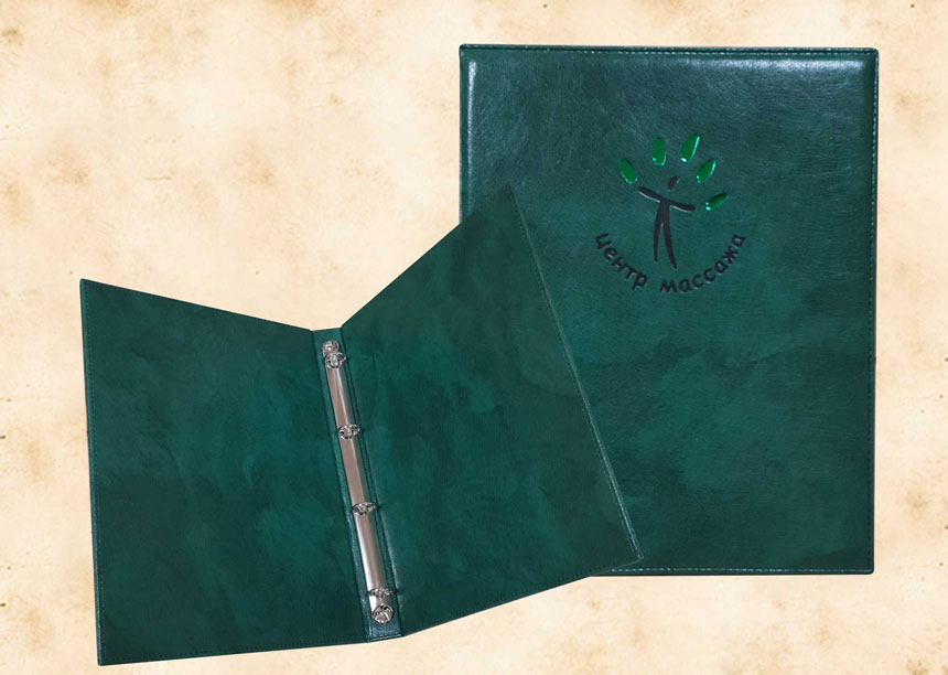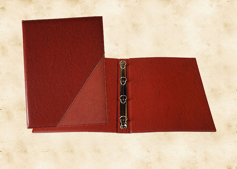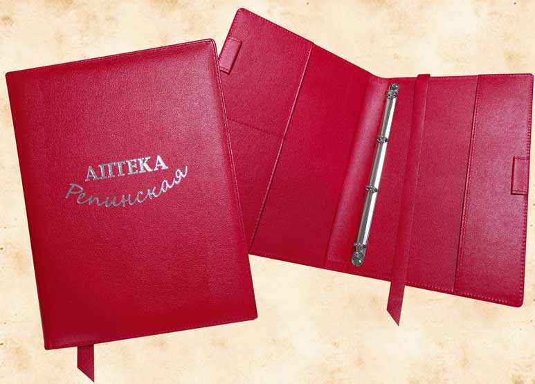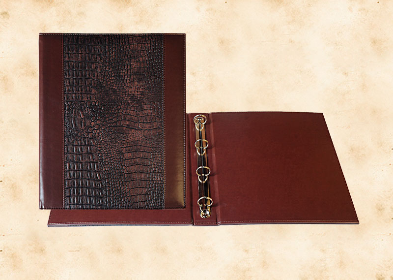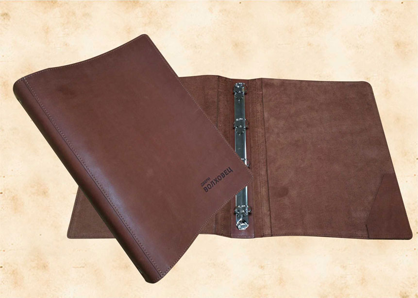 В нашей производственной мастерской мы изготавливаем разнообразные папки с разъемным кольцевым механизмом для крепления файлов или листов. Папки на кольцах мы производим на основе твердого или гибкого переплета из натуральной мягкой кожи, толстой шорной кожи или кожзама и других переплетных материалов. Папки с кольцевым креплением выполняем под А4 или А5 формат, а также любой нестандартный формат. Папки на кольцах из кожи или кожзама с тиснением логотипа или комбинированным дизайном могут быть дополненны фиксирующими хлястиками или клапанами для удобного хранения бумаг.