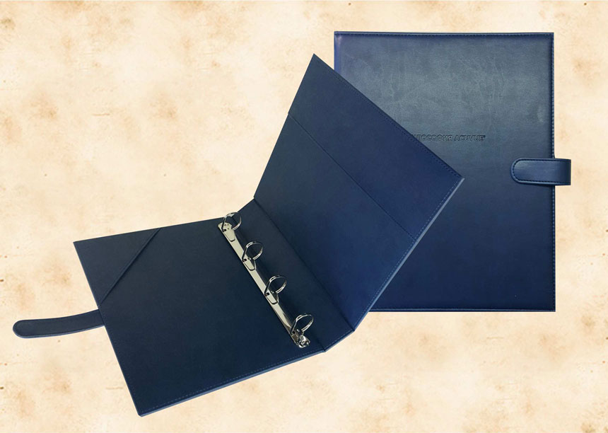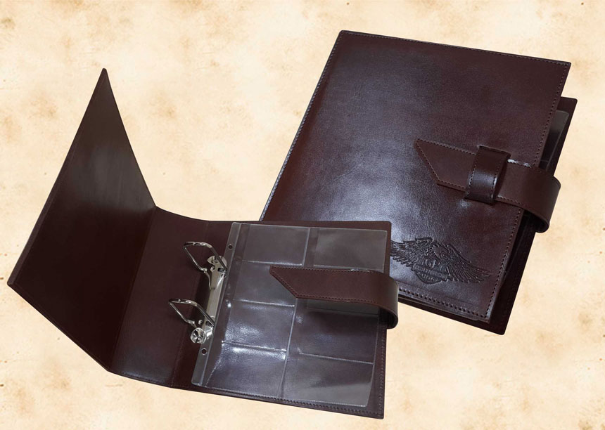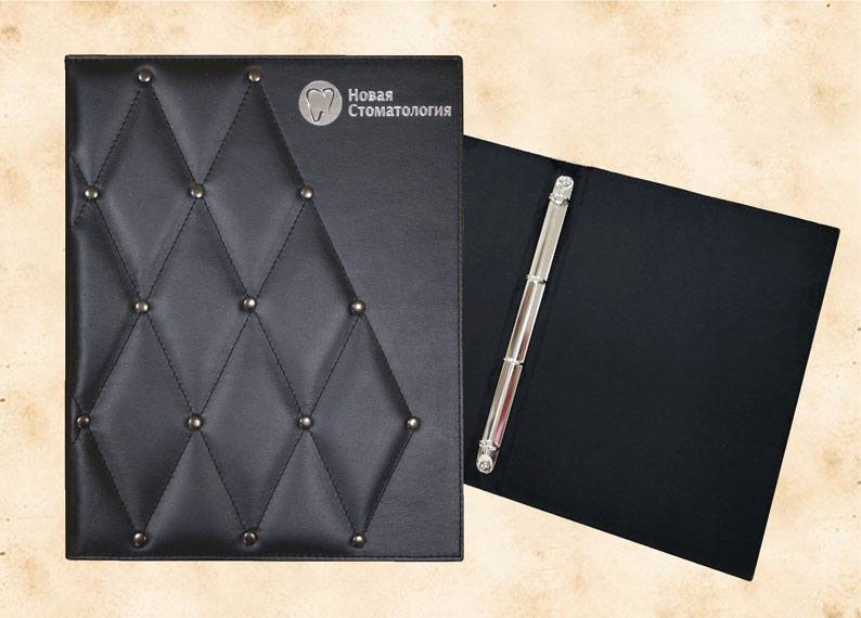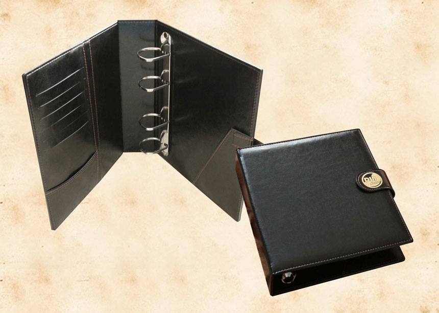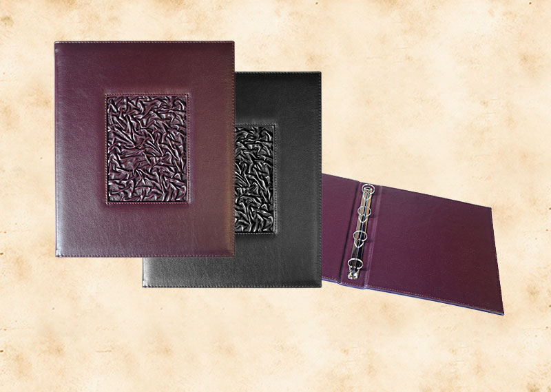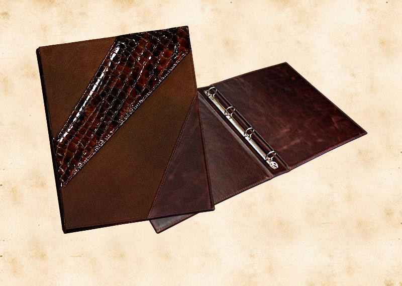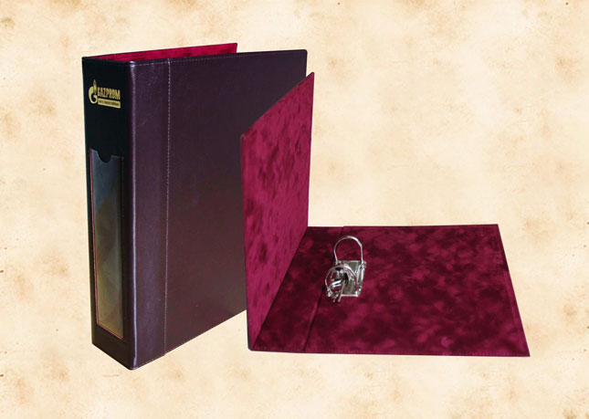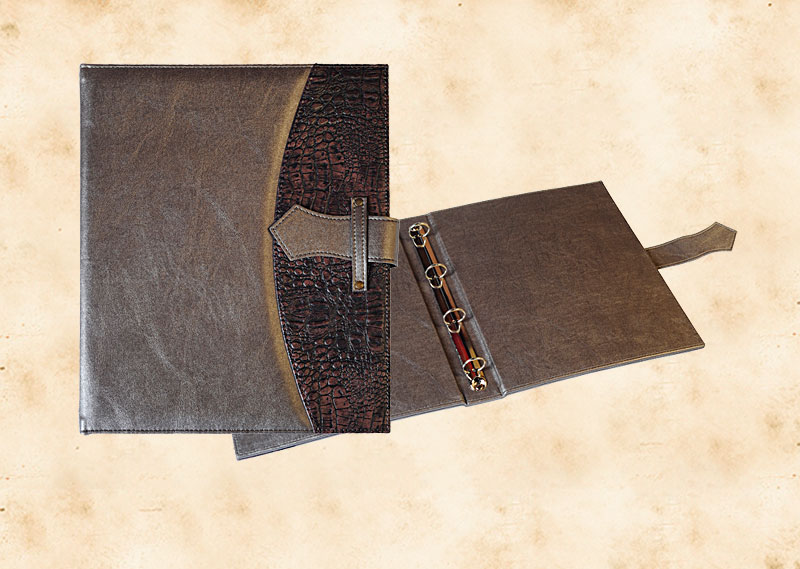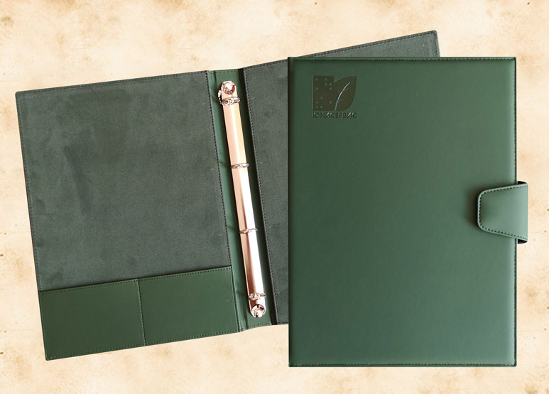 В нашей производственной мастерской мы изготавливаем разнообразные папки с разъемным кольцевым механизмом для крепления файлов или листов. Папки на кольцах мы производим на основе твердого или гибкого переплета из натуральной мягкой кожи, толстой шорной кожи или кожзама и других переплетных материалов. Папки с кольцевым креплением выполняем под А4 или А5 формат, а также любой нестандартный формат. Папки на кольцах из кожи или кожзама с тиснением логотипа или комбинированным дизайном могут быть дополненны фиксирующими хлястиками или клапанами для удобного хранения бумаг.