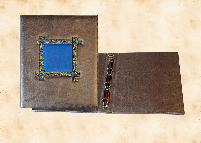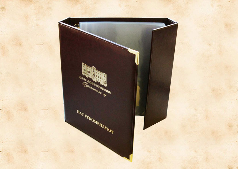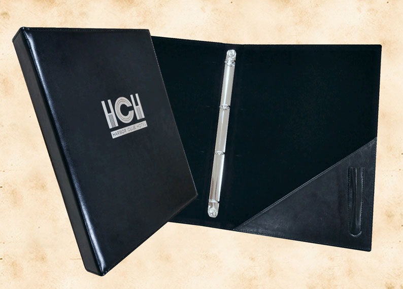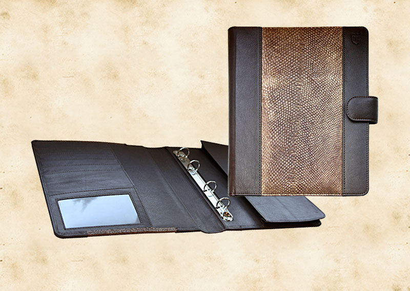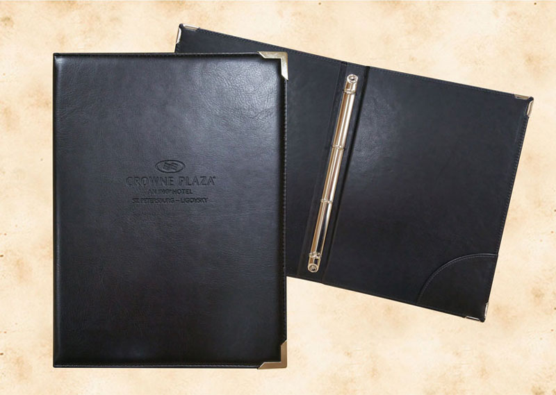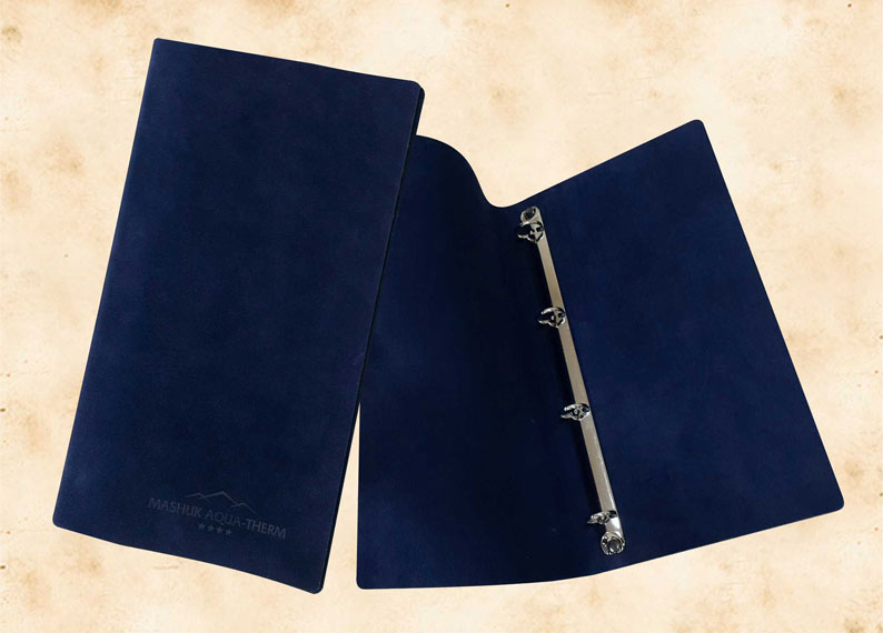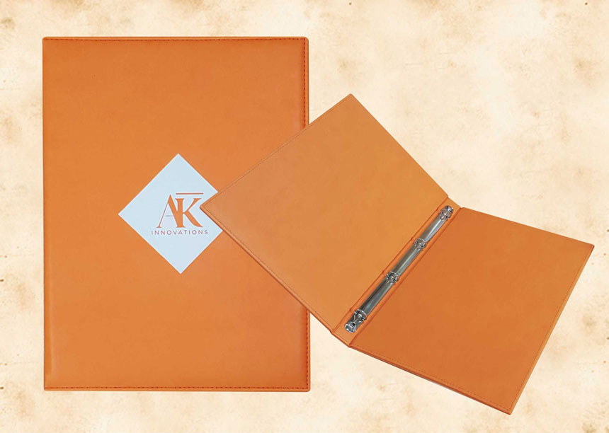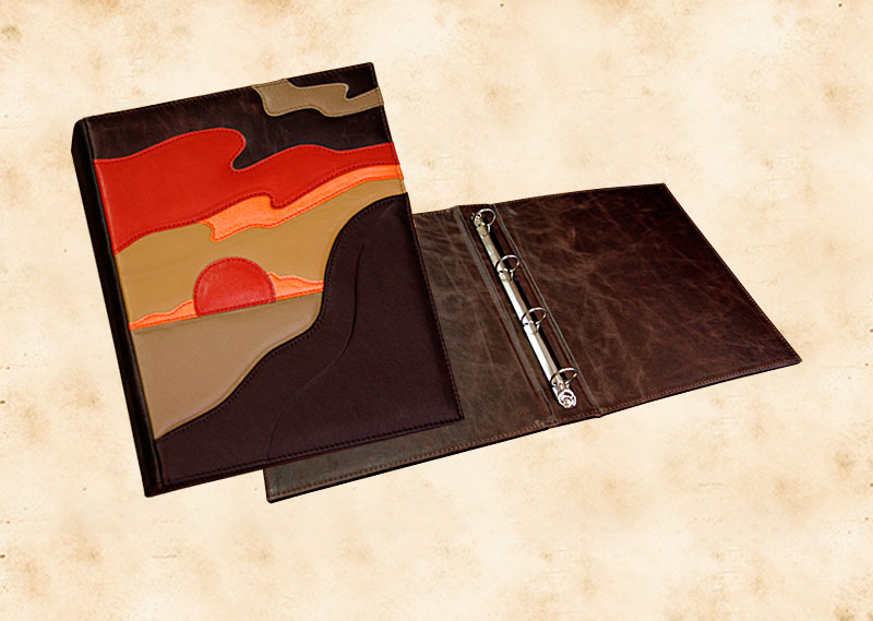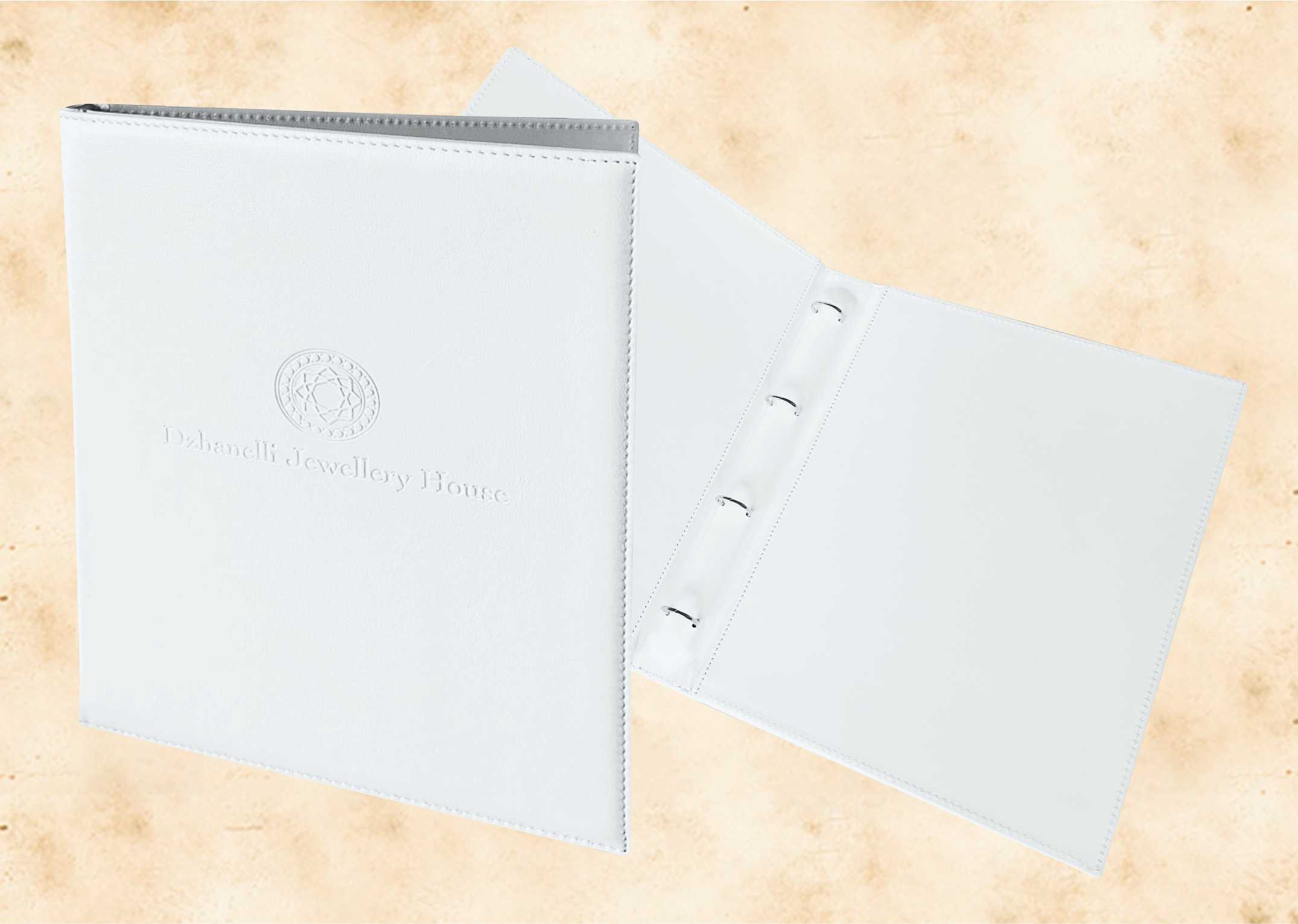 В нашей производственной мастерской мы изготавливаем разнообразные папки с разъемным кольцевым механизмом для крепления файлов или листов. Папки на кольцах мы производим на основе твердого или гибкого переплета из натуральной мягкой кожи, толстой шорной кожи или кожзама и других переплетных материалов. Папки с кольцевым креплением выполняем под А4 или А5 формат, а также любой нестандартный формат. Папки на кольцах из кожи или кожзама с тиснением логотипа или комбинированным дизайном могут быть дополненны фиксирующими хлястиками или клапанами для удобного хранения бумаг.