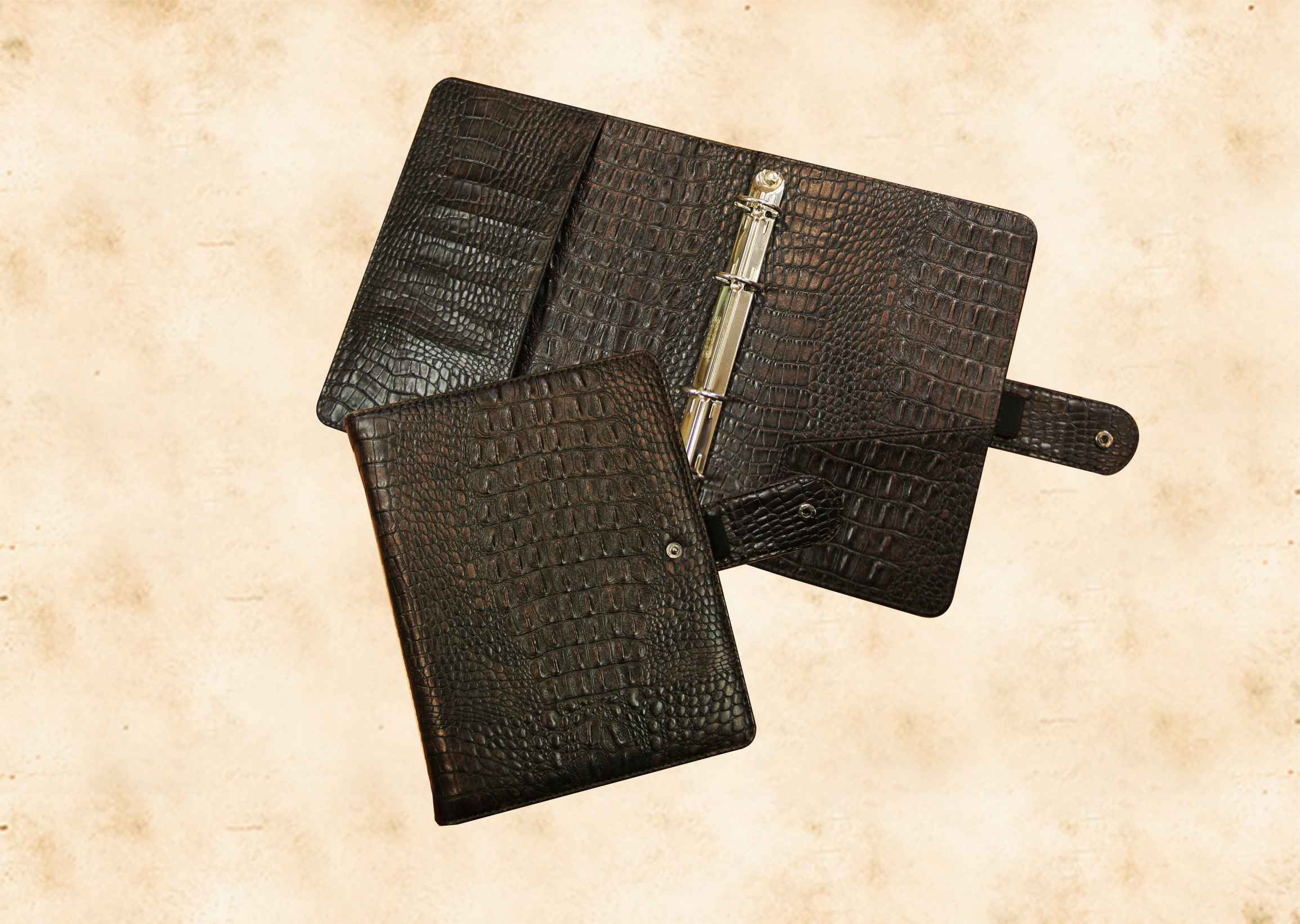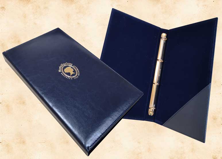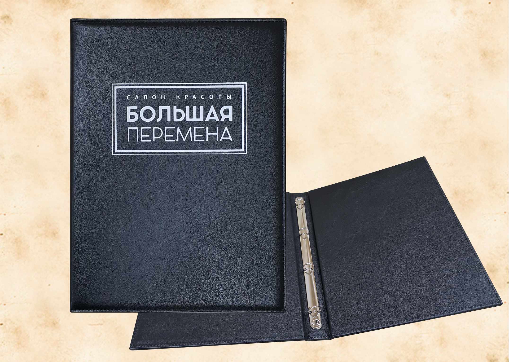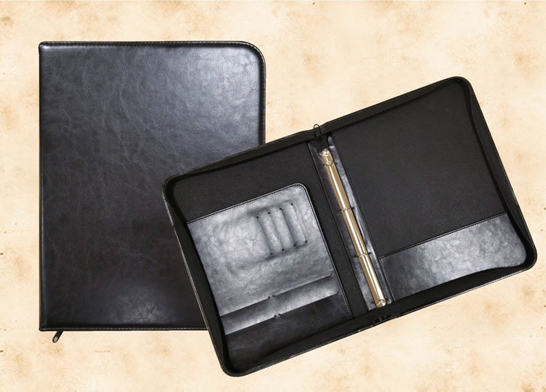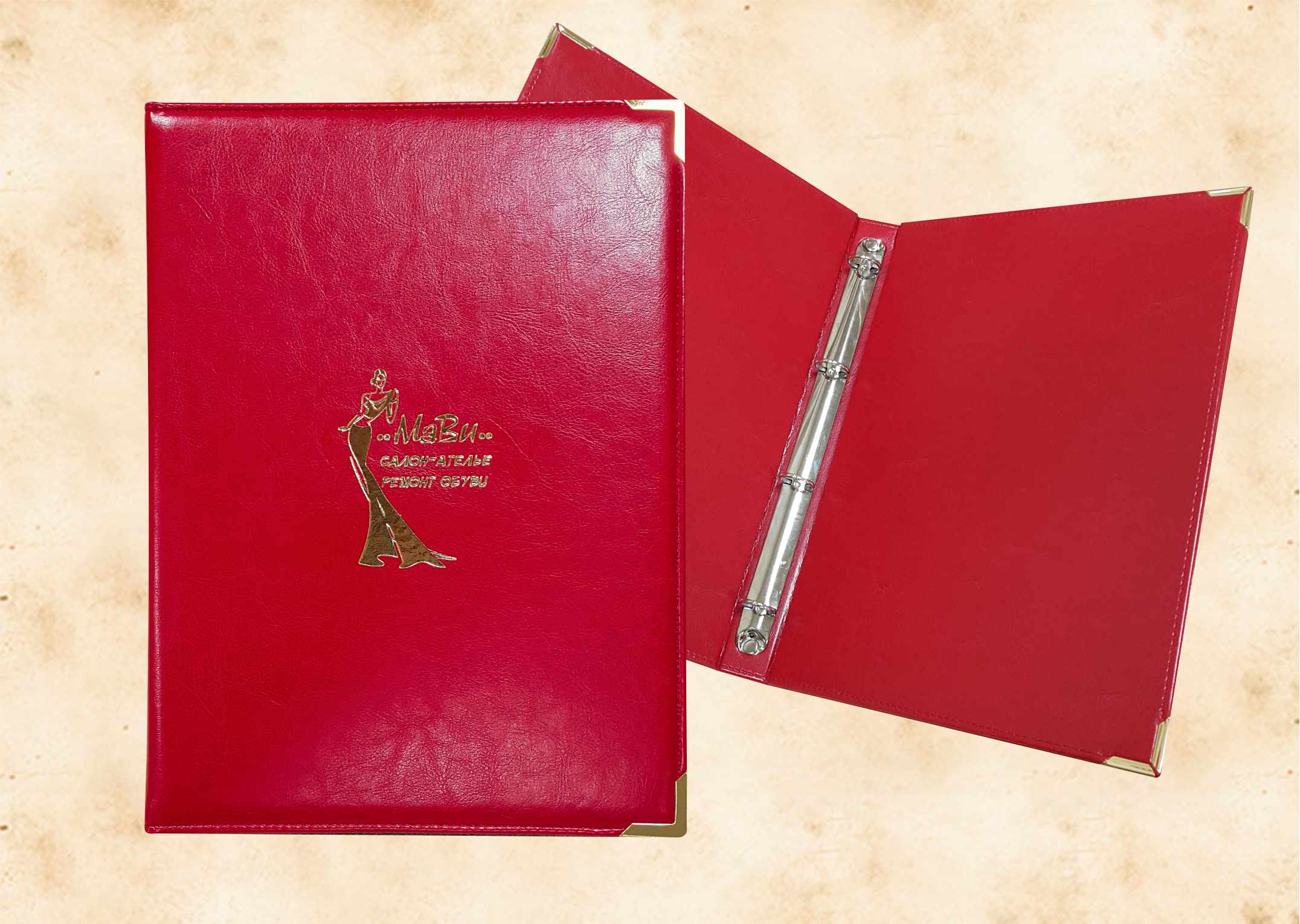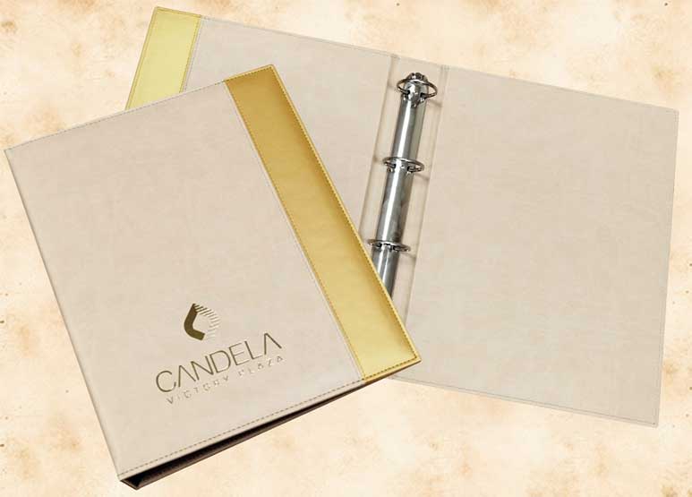 В нашей производственной мастерской мы изготавливаем разнообразные папки с разъемным кольцевым механизмом для крепления файлов или листов. Папки на кольцах мы производим на основе твердого или гибкого переплета из натуральной мягкой кожи, толстой шорной кожи или кожзама и других переплетных материалов. Папки с кольцевым креплением выполняем под А4 или А5 формат, а также любой нестандартный формат. Папки на кольцах из кожи или кожзама с тиснением логотипа или комбинированным дизайном могут быть дополненны фиксирующими хлястиками или клапанами для удобного хранения бумаг.