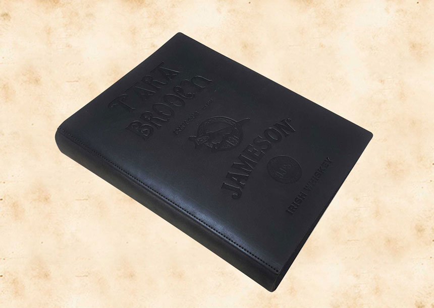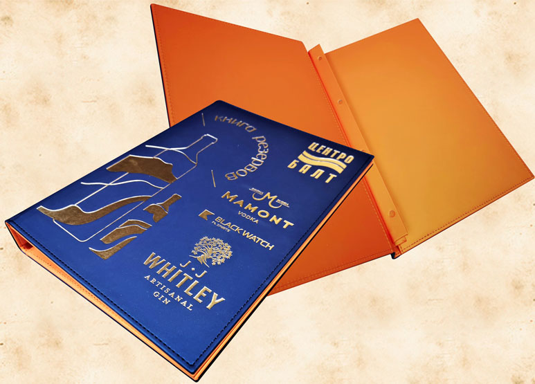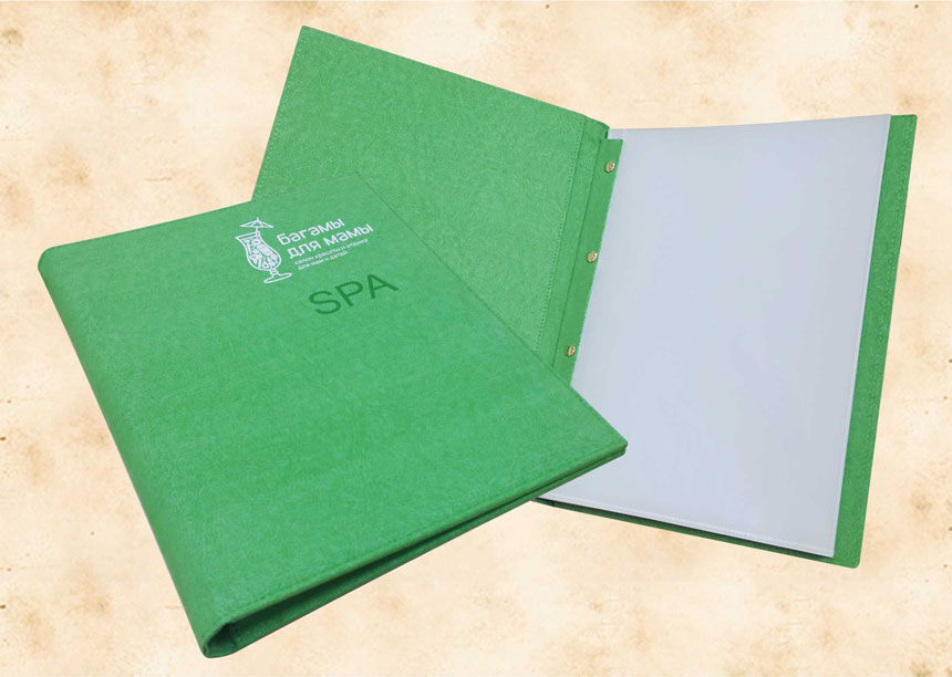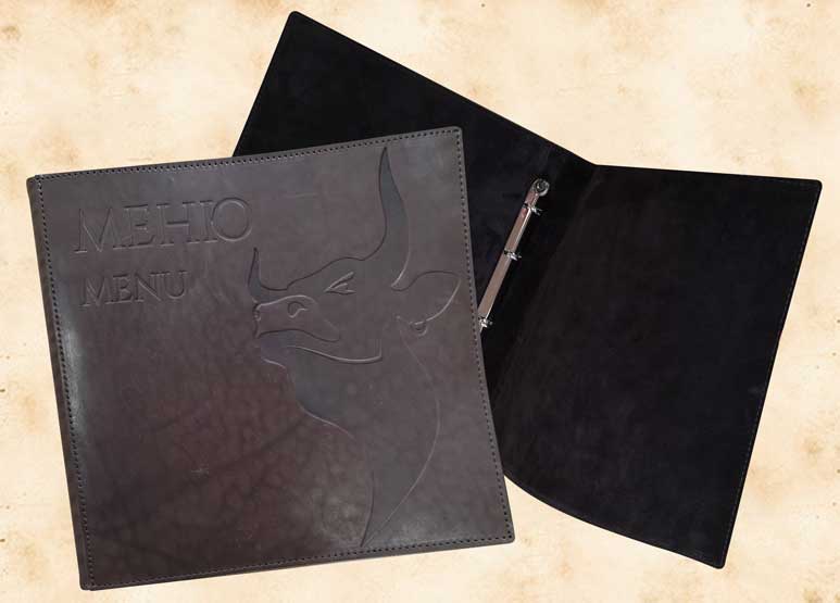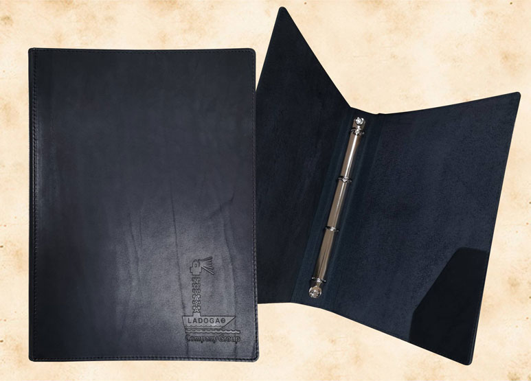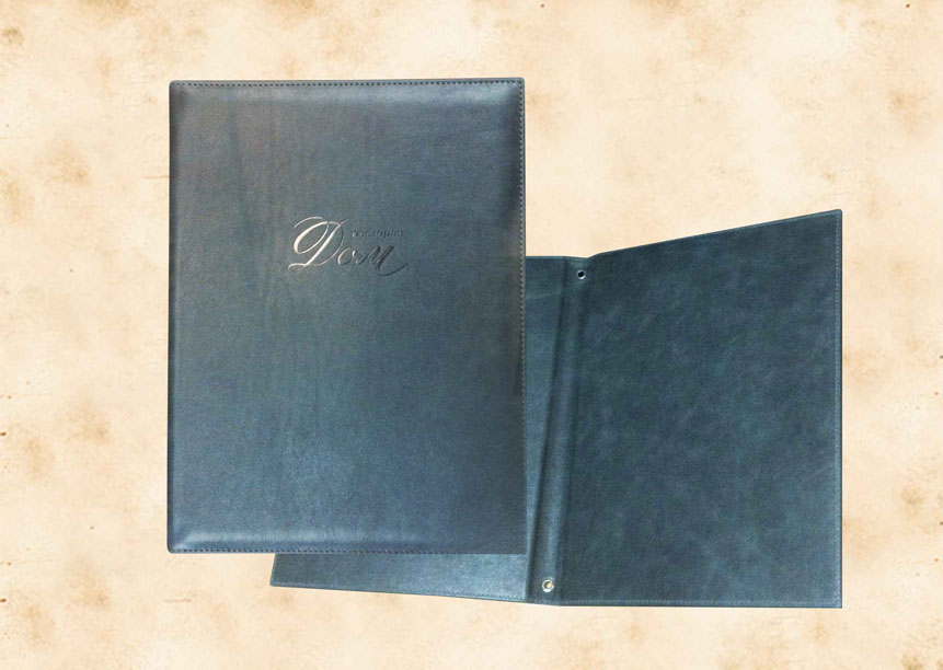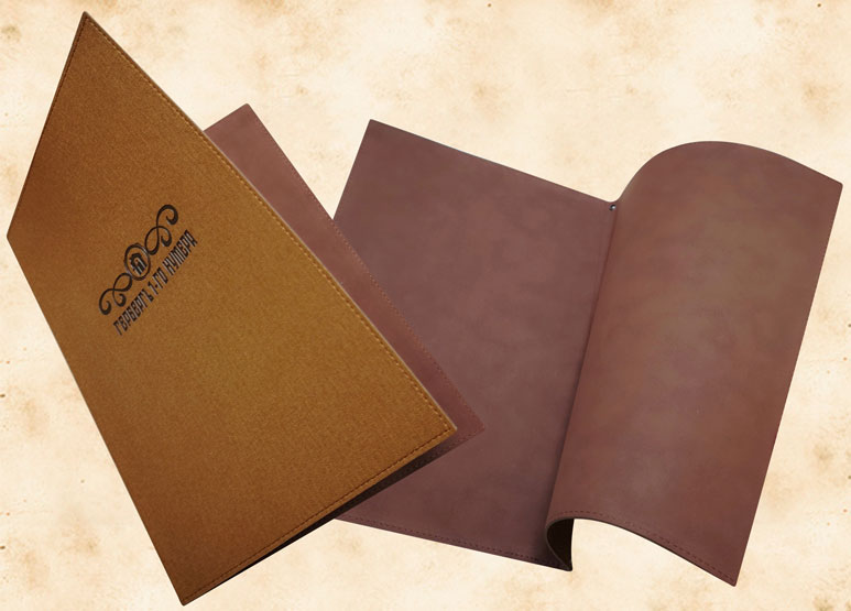 Часто помимо изготовления фирменных папок меню с логотипом в кафе и в рестораны требуются папки с логотипом для ведения и хранения внутренних документов. В нашей мастерской мы предложим изготовление удобных и практичных папок для документов под любые размеры и объем документов, с разработкой любой конструкции. И также украсим папки тиснением логотипа.