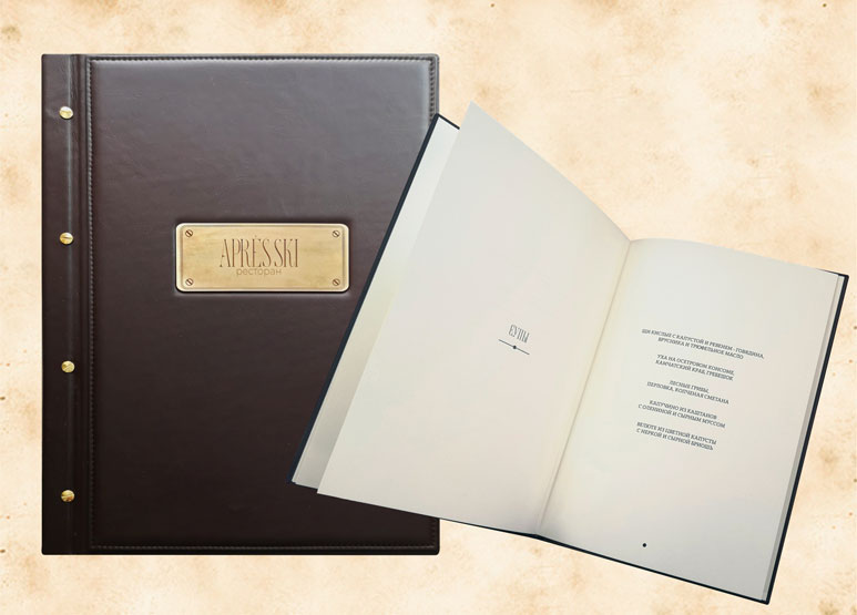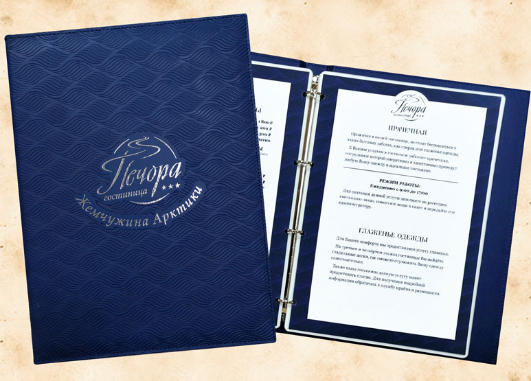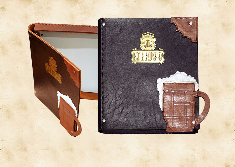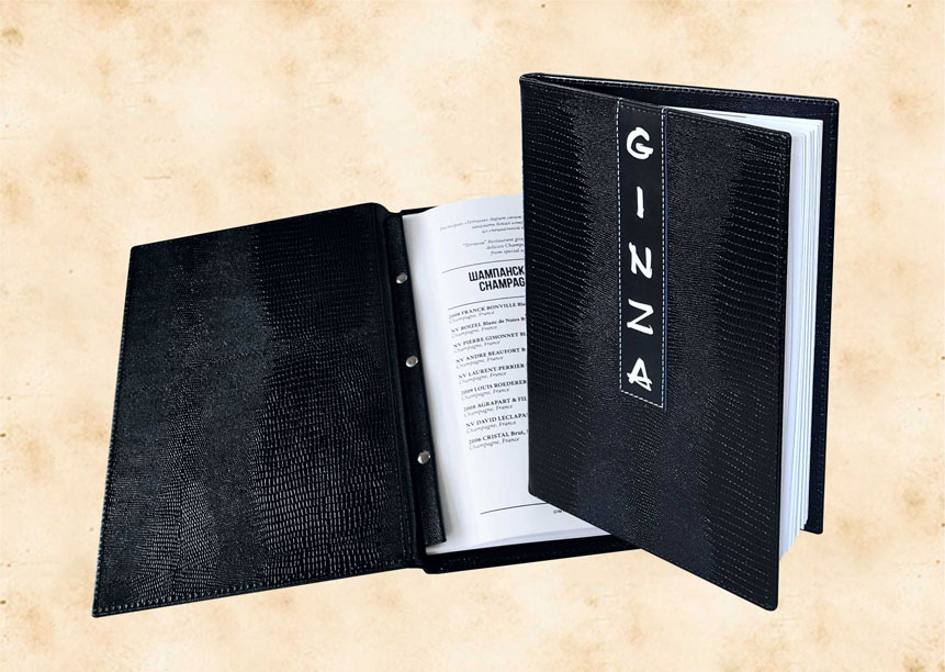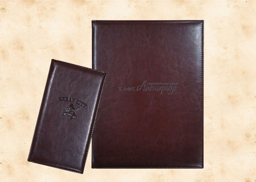 У каждого заведения – своя философия, свой стиль, поэтому мы предлагаем изготовление папок для меню на заказ и папок счет с индивидуальным дизайном, в котором непременно будет угадываться принадлежность именно к вашему заведению.