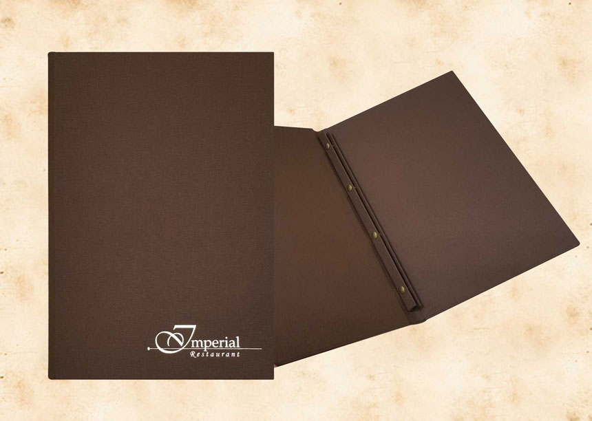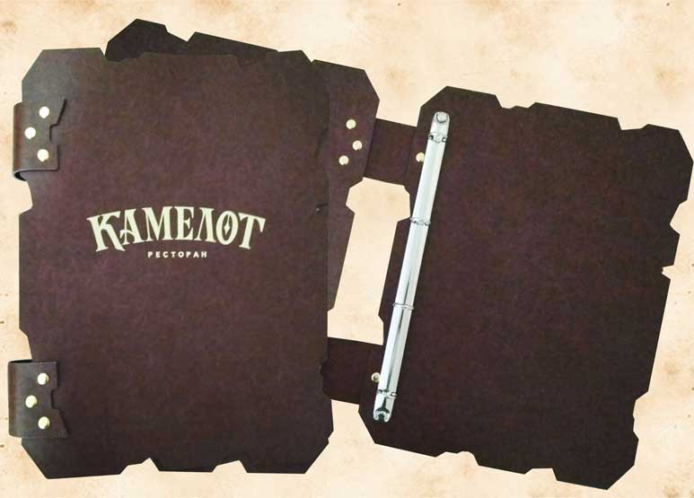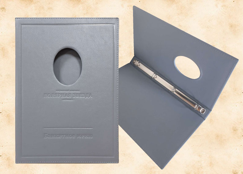 Ресторанные папки для меню чаще всего делаются на основе папок с кольцевым механизмом под файлы с меню, либо как папки на болтах под листы меню, с корешком или без. Мы можем предложить оригинальные альтернативные крепления в папки, такие как: зажим, шнуровка на люверсах, сквозные кольца, скрытые магниты и прочие варианты. Здесь Вы можете посмотреть некоторые примеры механизмов крепления папок-меню.