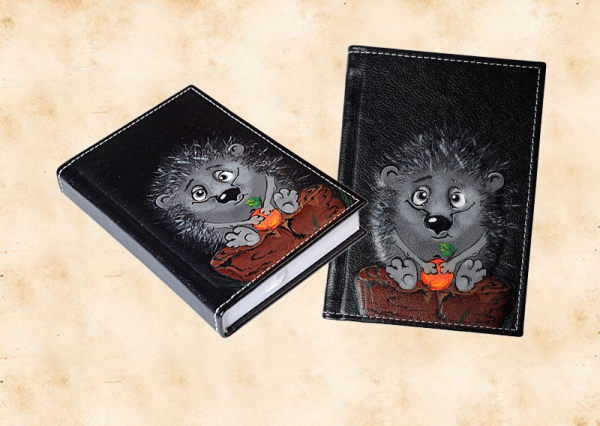 Малая записная книжка формата А6. Выполнена из натуральной кожи с рельефным рисунком и художественной росписью. Ручная работа.